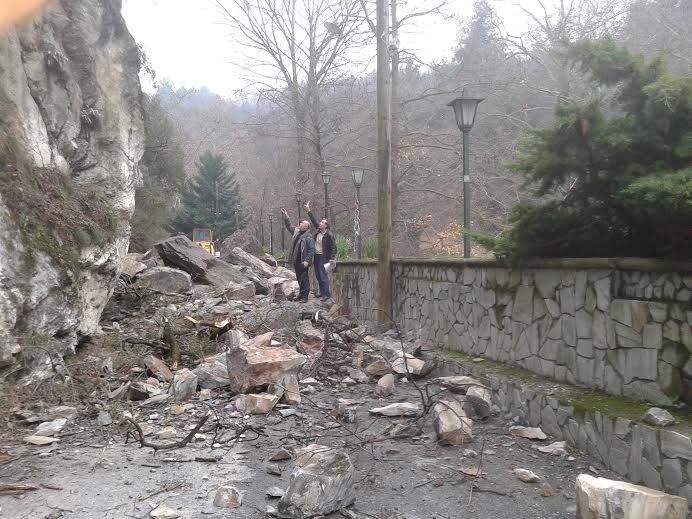 Στη συνέχεια, ο Δήμαρχος κ. Μπίνος ενημέρωσε τον Αντιπεριφερειάρχη κ. Θ.Θεοδωρίδη, ο οποίος απέστειλε άμεσα τον συνεργάτη του κ. Στέφανο Αργυράκη, γεωλόγο - γεωτεχνικό, προκειμένου να γνωματεύσει για το φαινόμενο και να αποτυπώσει την υφιστάμενη κατάσταση . Μετά την αυτοψία του ειδικού συνεργάτη του κ. Αργυράκη, στις 11/12/2014, εκτιμήθηκε ότι στην περιοχή της κατολίσθησης υπάρχουν διαρκή κινητικά φαινόμενα (περισσότερων δεκαετιών), ενώ τα σχιστολιθικά πετρώματα εμφανίζονται κατακερματισμένα και με πλήρως διαταραγμένο δομικό ιστό. Στην διενεργηθείσα αυτοψία παρών ήταν και ο Δήμαρχος κ. Μπίνος συνοδευόμενος από τον Αντιπρόεδρο των Λουτρών κ. Δημήτρη Βέσκο.