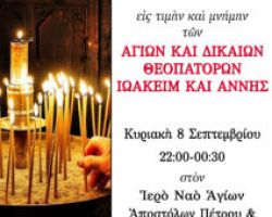 Την Κυριακή 8 Σεπτεμβρίου το βράδυ, από ώρα 22.00 μέχρι 0.30, στον Ιερό Ναό Αγίων Αποστόλων Πέτρου και Παύλου Γιαννιτσών, […]