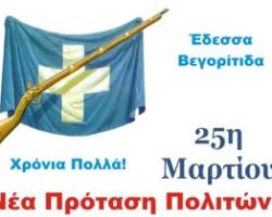 Επ ευκαιρία της επετείου της 25ης Μαρτίου, η Νέα Πρόταση Πολιτών Έδεσσας Βεγορίτιδας τιμά τους αγωνιστές του 1821 που χύσανε […]