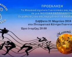 Το Σάββατο 31 Μαρτίου και ώρα 8:00 μμ θα πραγματοποιηθεί η καθιερωμένη ετήσια συναυλία του Μουσικού Σχολείου Γιαννιτσών στο Πνευματικό […]
