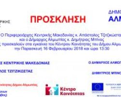 Ο Περιφερειάρχης Απόστολος Τζιτζικώστας και ο Δήμαρχος Αλμωπίας Δημήτρης Μπίνος σας προσκαλούν στα εγκαίνια του Κέντρου Κοινότητας του Δήμου Αλμωπίας […]