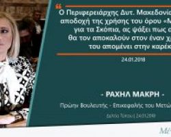 Ραχήλ Μακρή: «Ο Περιφερειάρχης Δυτ. Μακεδονίας, μετά την αποδοχή της χρήσης του όρου «Μακεδονία» για τα Σκόπια, ας ψάξει πως […]
