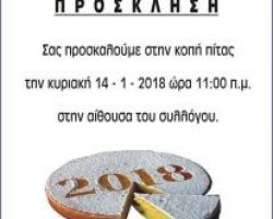 Ο Μορφωτικός και πολιτιστικός Σύλλογος Χαλκηδόνας σας προσκαλεί στην κοπή της πρωτοχρονιάτικης πίτας, που θα πραγματοποιηθεί την Κυριακή 14 Ιανουαρίου […]