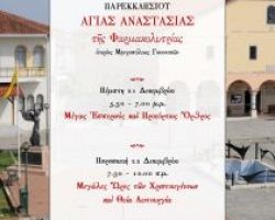 Την Παρασκευή 22 Δεκεμβρίου πανηγυρίζει το ιερό παρεκκλήσιο της Αγίας Αναστασίας της Φαρμακολυτρίας στον όροφο του Ενοριακό Κέντρου του Ιερού […]