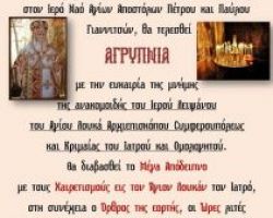 Την Πέμπτη 16 Μαρτίου 2017, το βράδυ, από τις 8.30 μ.μ. έως 1.00 π.μ., στον Ιερό Ναό Αγίων Αποστόλων Πέτρου […]