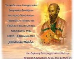 Τα παιδιά των Ενοριακών Κατηχητικών Συνάξεων της ενορίας των Αγίων Αποστόλων Πέτρου και Παύλου Γιαννιτσών διοργανώνουν Εορτή – Αφιέρωμα στον […]