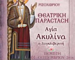 Θεατρική παράσταση στο Ριζοχώρι: Αγία Ακυλίνα η Ζαγκλιβερινή