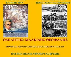 Ομιλία με θέμα «Από τη δολοφονία του κυβερνήτη Καποδίστρια στη Γενοκτονία της Μνήμης του Ποντιακού Ελληνισμού», με ομιλητή τον κ. […]