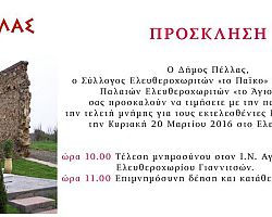 Ο Δήμος Πέλλας, ο Σύλλογος Ελευθεροχωριτών “το Πάικο” και ο Σύλλογος Παλαιών Ελευθεροχωριτών “το Άγιο Πνεύμα” σαν προσκαλούν να τιμήσετε […]