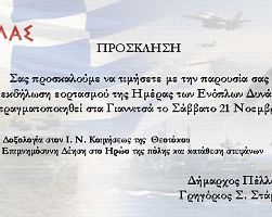 Σας προσκαλούμε να τιμήσετε με την παρουσία σας την εκδήκωση εορτασμού της ημέρας Ενόπλων Δυνάμεων που θα πραγματοποιηθεί στα Γιαννιτσά […]