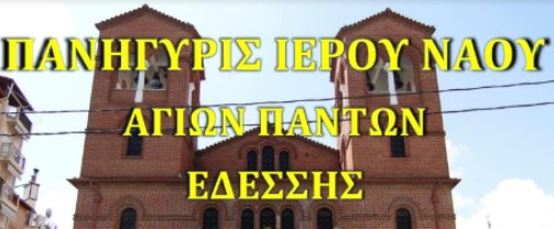 Την Κυριακή 15 Ιουνίου πανηγυρίζει ο Ιερός Ναός Αγίων Πάντων Εδέσσης, σύμφωνα με το εξής πρόγραμμα:
