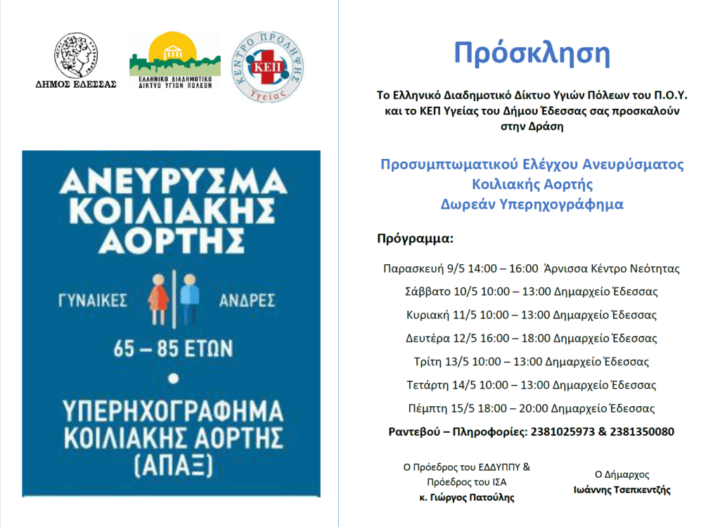 Η δράση διοργανώνεται από το Ελληνικό Διαδημοτικό Δίκτυο Υγιών Πόλεων του Π.Ο.Υ. και το ΚΕΠ Υγείας του Δήμου Έδεσσας σας και την Αντιδημαρχία Παιδικής Μέριμνας, Μέριμνας για την Τρίτη Ηλικία, Κοινωνικής Πολιτικής, Αλληλεγγύης και Πρόνοιας