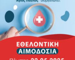 Ο Δήμος Αμπελοκήπων-Μενεμένης σε συνεργασία με το Νοσοκομείο “Άγιος Παύλος”διοργανώνει Εθελοντική Αιμοδοσία την Πέμπτη 22/5/2025 από τις 9π.μ. έως την […]