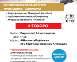 Στο Λιτόχωρο συνεχίζεται ο κύκλος του δωρεάν ενημερωτικού-εκπαιδευτικού προγράμματος για τη χρήση αυτόματου εξωτερικού απινιδωτή, την καρδιοαναπνευστική αναζωογόνηση και την απόφραξη […]