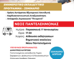 Στην αίθουσα εκδηλώσεων του δημοτικού σχολείου Νέου Παντελεήμονα συνεχίζει ο κύκλος του δωρεάν ενημερωτικού-εκπαιδευτικού προγράμματος για τη χρήση αυτόματου εξωτερικού […]