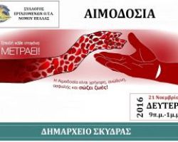 Σας ενημερώνουμε ότι την Δευτέρα 21 Νοεμβρίου 2016 θα πραγματοποιηθεί Εθελοντική Ομαδική Αιμοδοσία του Συλλόγου μας από τις 9:00 το […]